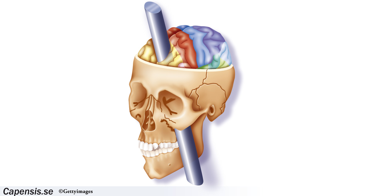 År 1848 var Phineas Gage 25 år och jobbade med järnvägsbygge när han råkade ut för en olycka. Ett järnspettet slungades genom huvudet på Phineas Gage. Spettet gick in i skallen under vänster kindben och ut genom pannan.