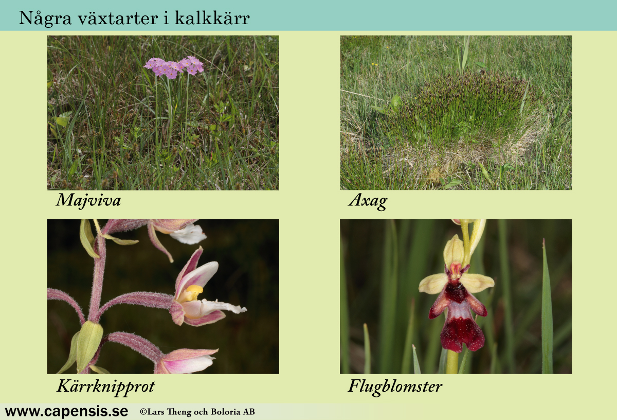 En speciell typ av kärr hittar man i kalkrika områden. Kombinationen av näringsrikedom och högt pH på grund av kalk i marken ger upphov till en rik flora.
